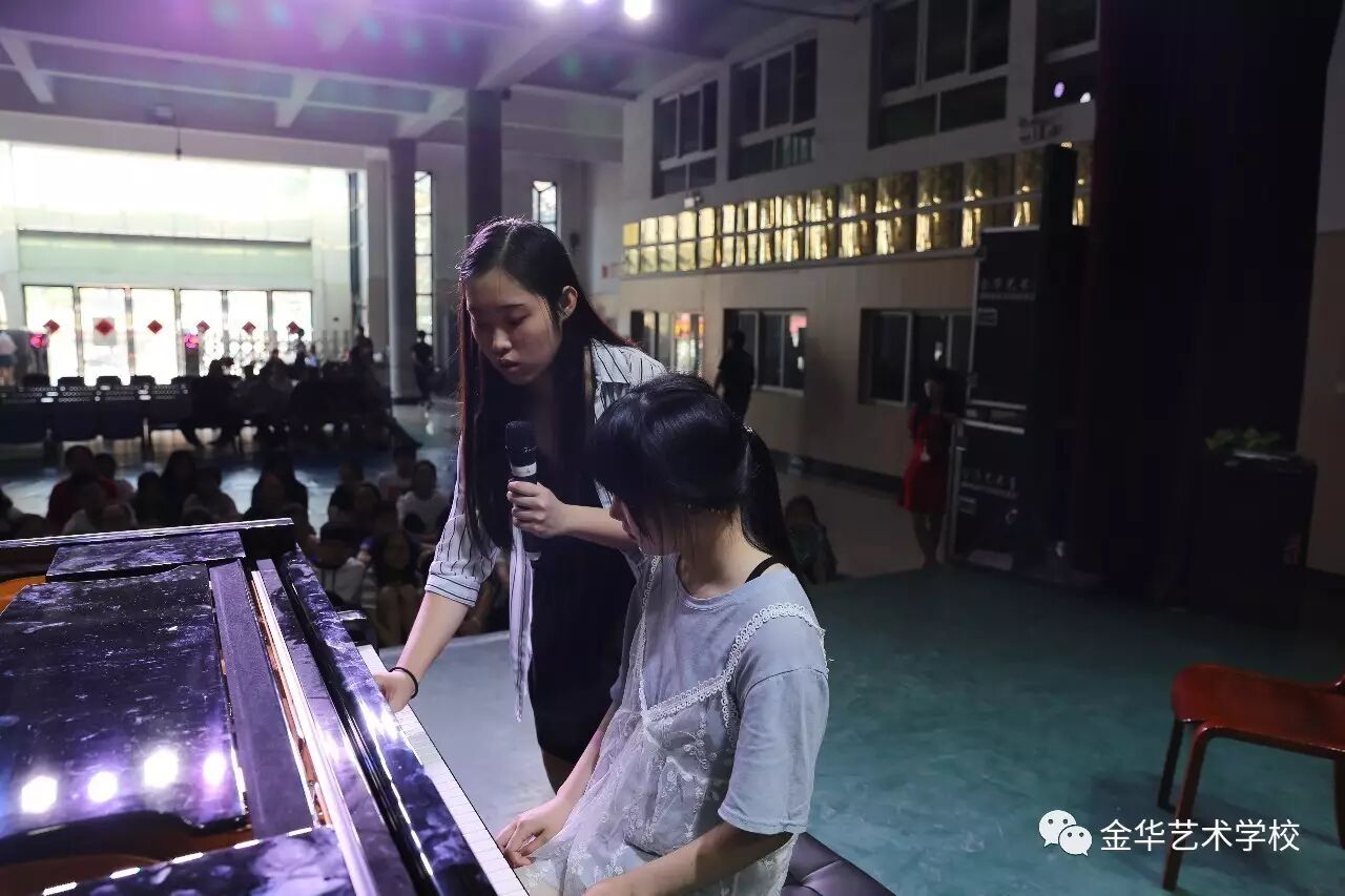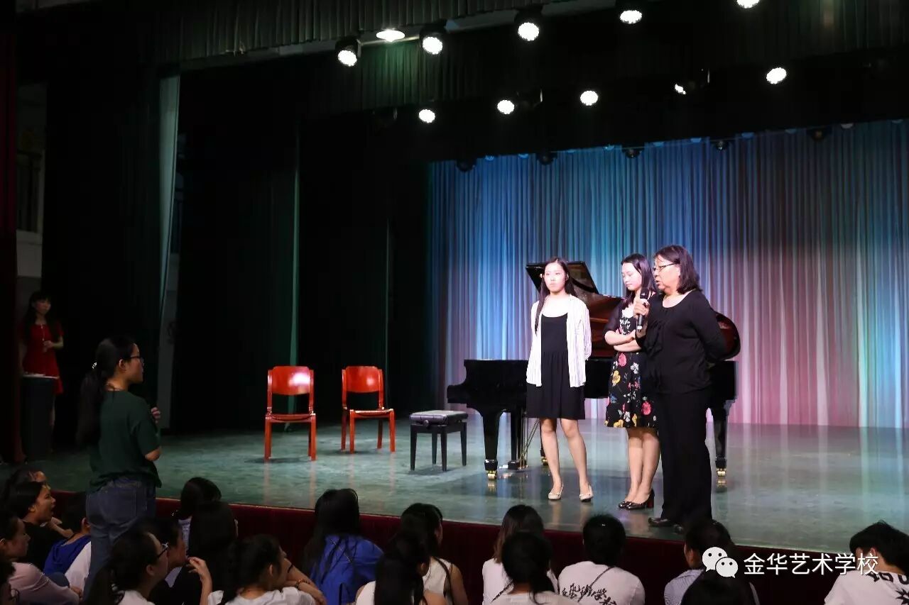 此次是由美国华盛本大学钢琴教授丁小立老师携学生郑书婳和叶舒庭前来演出,丁教授现任美国堪萨斯州音乐教师协会副会长。当天下午,金华艺术学校全体师生座无虚席,认真的观看了演出。