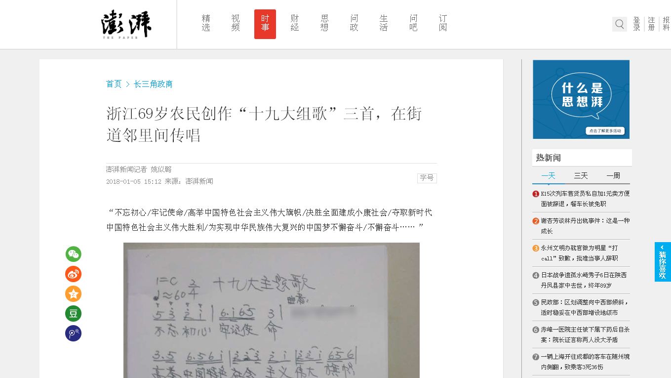《组歌》旋律欢快、振奋的3首歌曲可不简单!上周五,“澎湃新闻”在“时事”栏目刊发文章,专门报道此事。