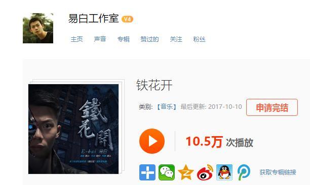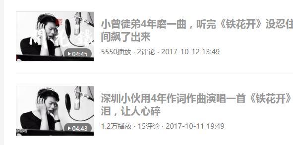 自学作词作曲,用4年时间创作《铁花开》的深圳小伙最近有点火。《铁花开》唱出了许多人的心声,很多听众循环播放,被称为“病毒曲”。《铁花开》是易白继《花儿又开》之后,用4年时间作词作曲演唱的一首新歌。歌曲MP3版本的音频10月10日上线便被听众疯转,当夜播放量突破20万。