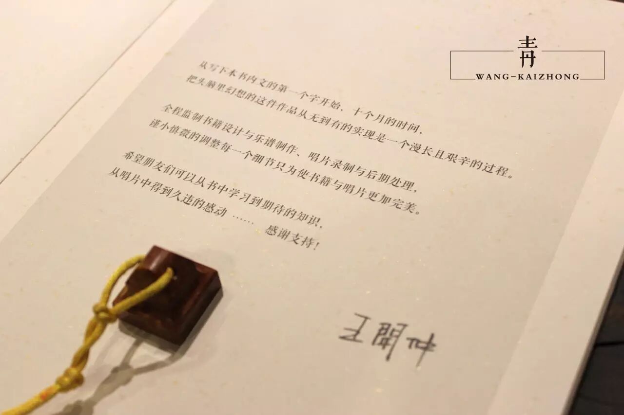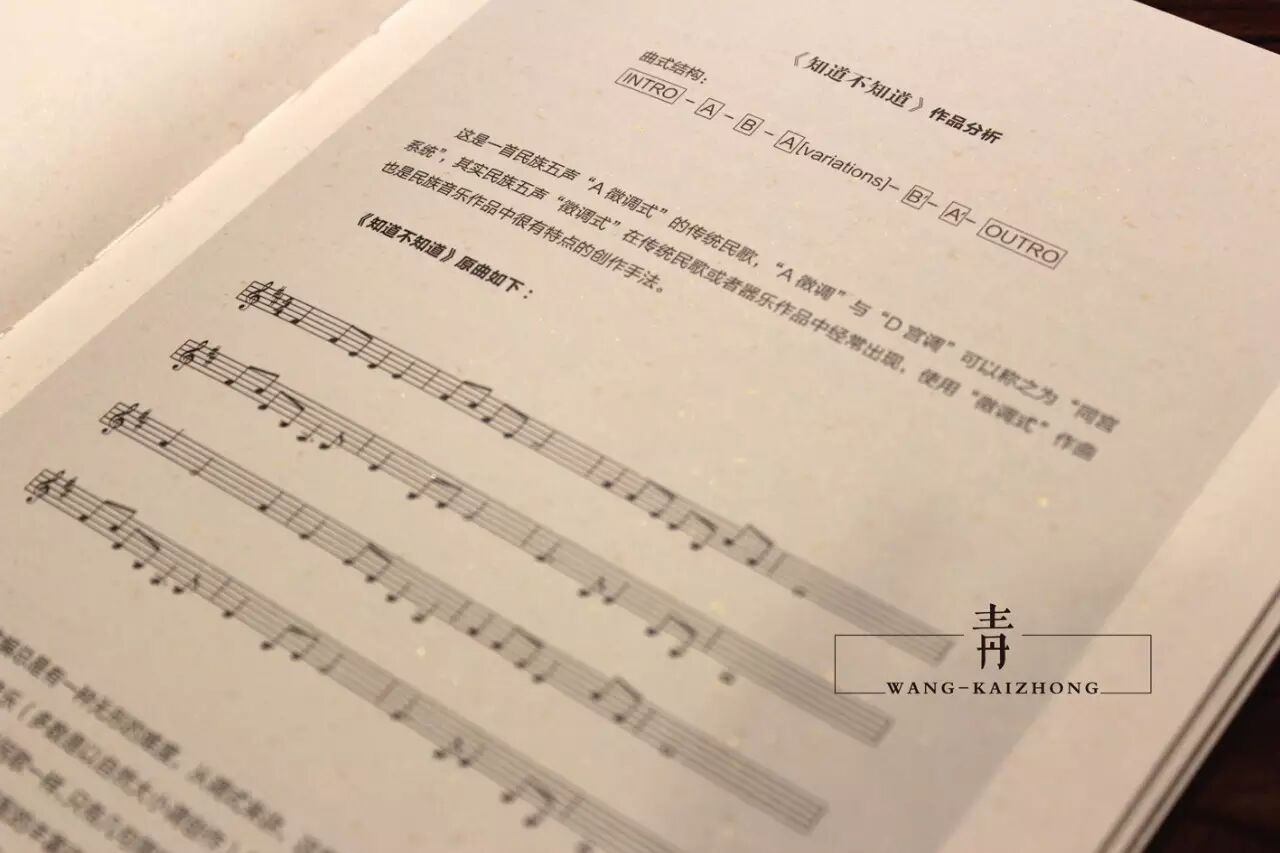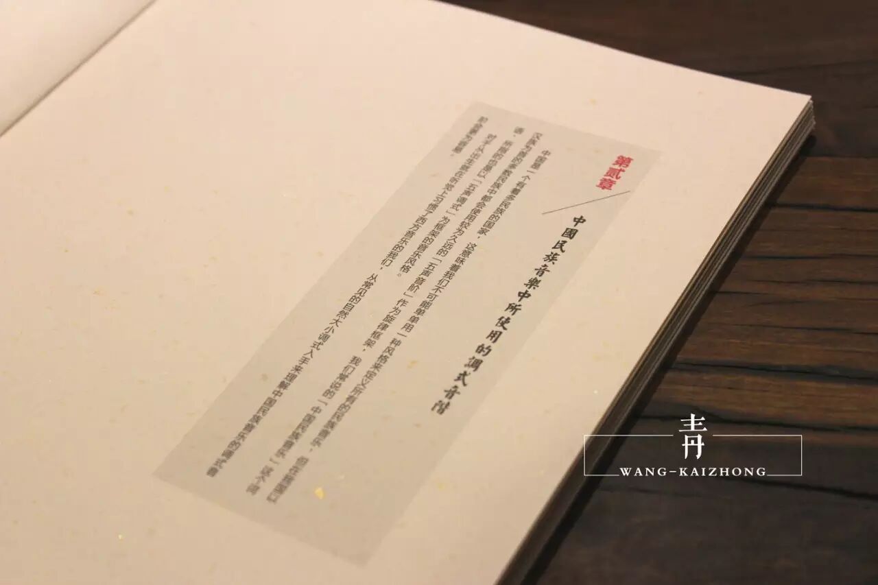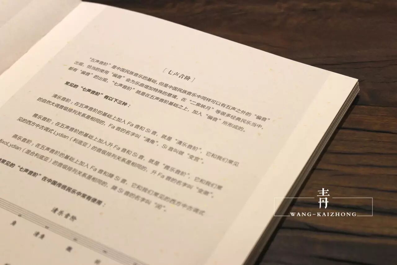 作者王开仲在2014年末出版了限量[1000套]的《中式指弹吉他作品创作教程》,书中从"概念"以及"乐理"与"和声"几个方面定义了"中式"指弹吉他作品的形态与特点,从"民族调式"与"民乐和声运用"以及作者本人原创作品的"作曲"与"编曲"详细解析等几个方面来教给大家如何创作"中式"指弹吉他作品。