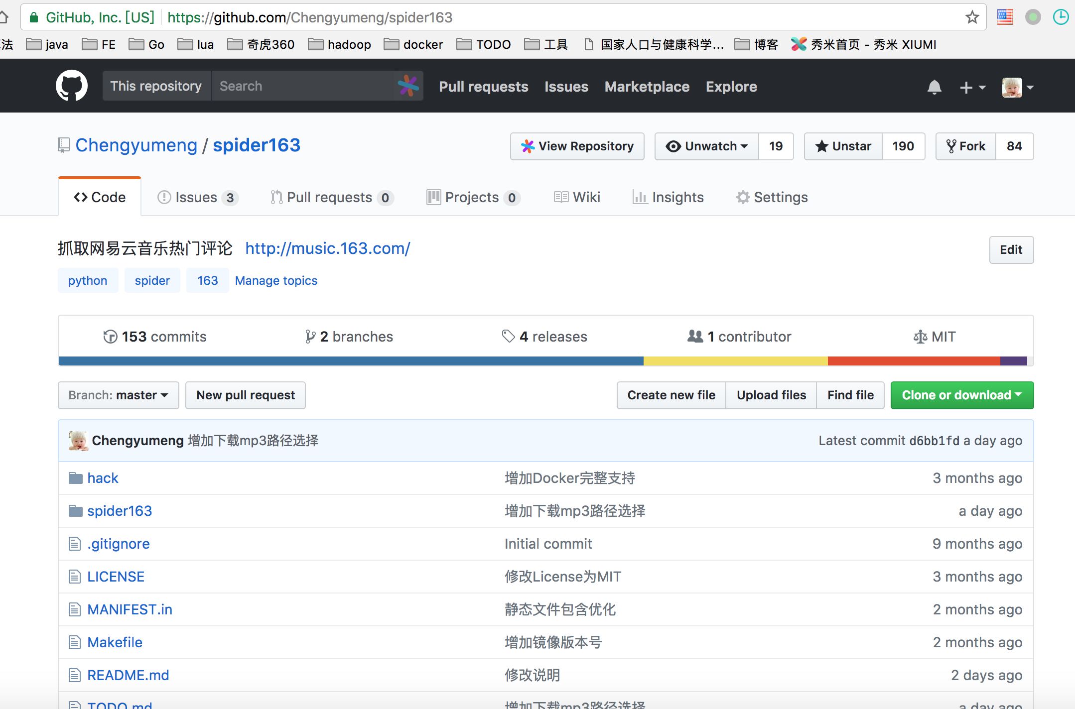 2017,从python小白到维护Spider163到v2.6.0版本积累190 star,也是一个蛮有意思的经历。2018年会继续支持这个项目,一直坚持到500star,这是flag!