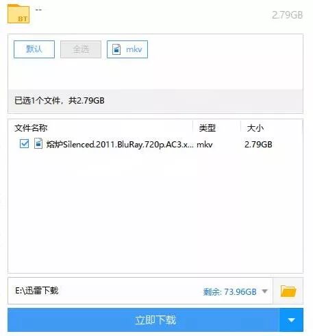 点击立即下载,就会解析出资源,供你下载,选择你需要的资源,点击立即下载,就开始下载电影到你的电脑上了,如果你迫不及待的想看电影,迅雷也是支持边下载边播放的,如下图