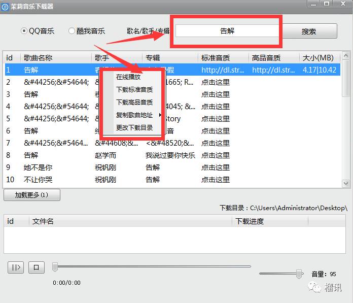 茉莉音乐下载器,一款可以免费下载QQ音乐和酷我音乐的音乐下载器,支持下载收 费音乐和版权歌曲,支持下载高品质音乐320K。