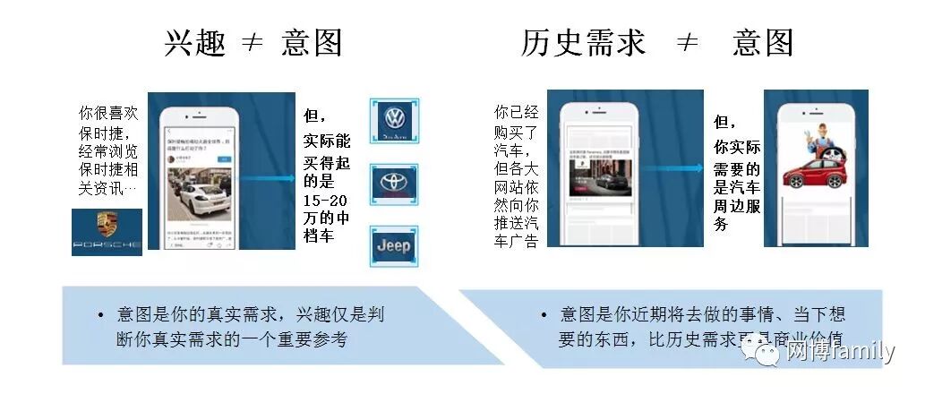 大家都知道,对于信息流广告而言,CTR高=受众感兴趣=好创意,但是好创意≠CTR高≠受众感兴趣,这个过程是不可逆的。所以选对客户去投放才会有更高的CTR,针对这一特性,百度平台充分利用了大数据的分析,对客户的意图标签做了功能性的突破开发。