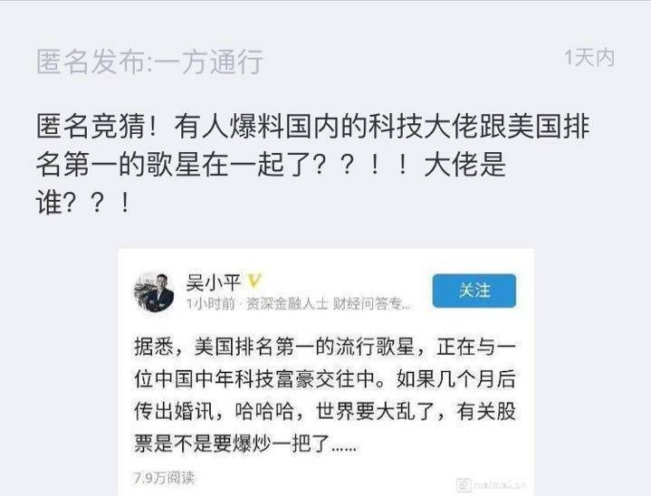 排名第一的美国流行歌星,还要未婚,吃瓜群众立马锁定霉霉,但和霉霉谈恋爱的究竟是哪个,大家都是一脸懵逼:到底哪位中国科技界大佬,采摘了这朵带刺玫瑰?
