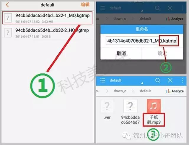 找到文件名特别长的文件以及文件扩展名为“kgtmp”这个后缀,将其更改为“MP3”,如果更改不了可以使用其他第三方文件管理进行更改文件名或在电脑中查找到该文件进行更改一样可以更改成功。 之后将音乐保存就可以了。