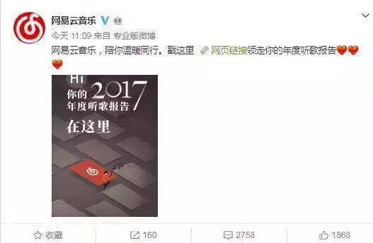 网易云音乐会把你一年所听过的歌做一份听歌报告,你的听的音乐代表你的心情,分享到朋友圈