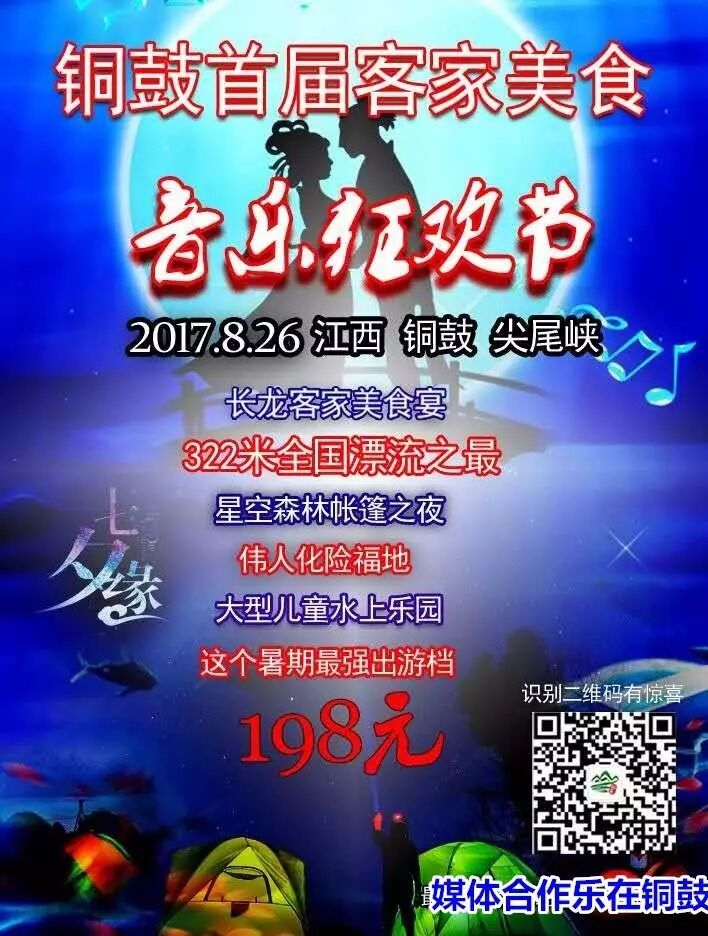 在8月26~27日,浪漫七夕的前夕。这一天有可能是铜鼓有史以来人气最火爆、最疯狂、最欢乐的一个夜晚!因为铜鼓首届音乐音乐帐篷节来啦!这是乐在铜鼓参与策划的一场大型活动,规模之大、内容之丰富,活动之精彩,绝对值得期待!