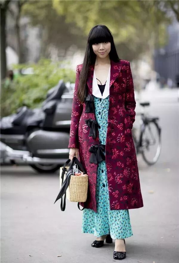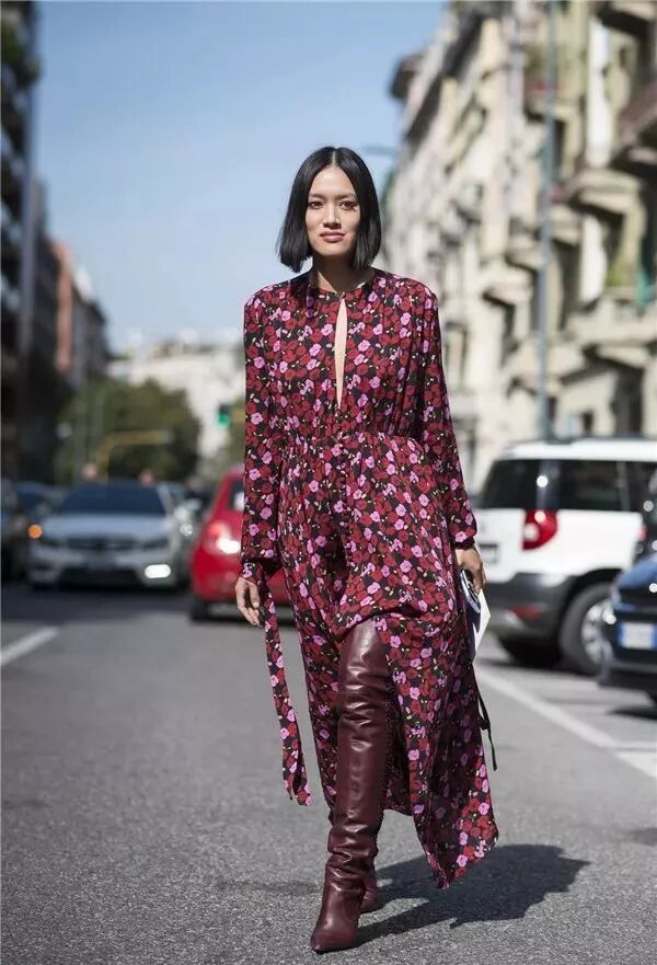 首先下面这两位博主,二人都是配长靴,都不约而同扣上了扣子,但是二者靴子颜色不同,扣纽扣的方式稍微有些差异,给人的感觉就大不相同,前者保守并时髦着,后者则多了几分性感和女人味。