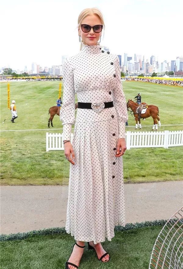 下面这款撞衫率最高的白底黑色波点裙,能驾驭的年龄跨度就比较大了。这样各个年龄层、各种风格的人都能穿出独特的时髦感,它搭配马丁靴可帅气↓