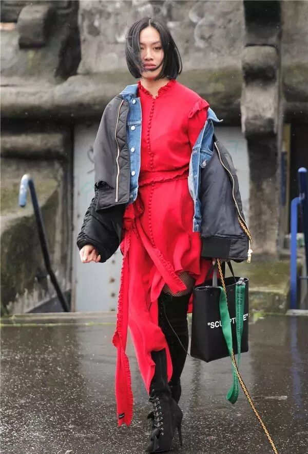 同一条裙子,不同的人穿出来的效果也不一样,下面这位潮人穿出来就有种和年龄不相称的怪异。