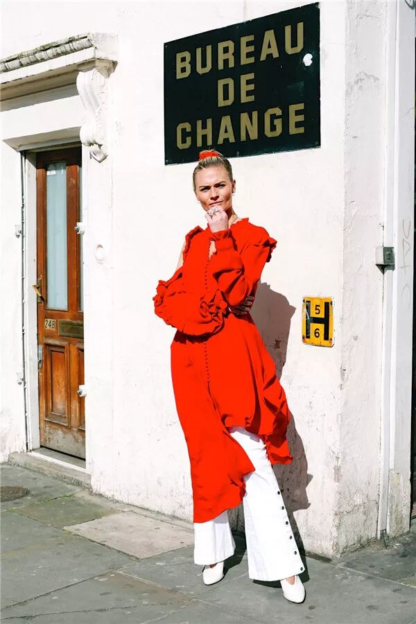 这个来自波兰的小众品牌Magda Butrym,最近这几年在时尚圈人气可谓是极速上升,无数时尚博主达人心甘情愿免费打call,最先爆红的就是这件红色荷叶边不规则连身裙↓