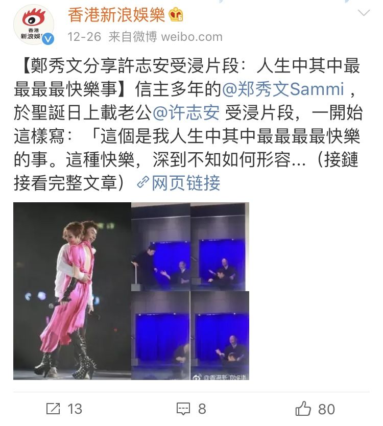而12月17日,再度见证自己的丈夫许志安受洗。