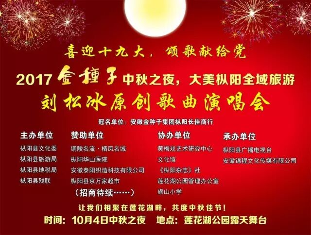 10月4日的莲花湖畔将会是一片沸腾的海洋,让我们将期待化为喝彩,共同见证首个属于枞阳人自己的中秋之夜!
