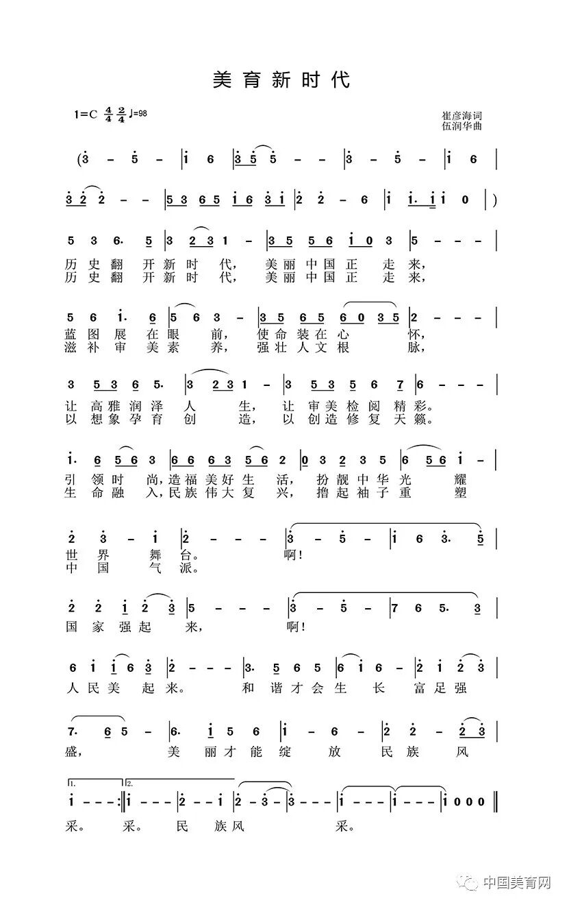 中国美育网讯:即将召开的第三届全国美育大会主题歌今日创作完成。作为有史以来的第一首中国美育工作者之歌,无论是歌词还是作曲,既紧密贴合党的十九大会议精神,也唱出了当代中国美育工作者满怀信心,为建设美丽中国和实现人民对美好生活的向往勇于创新,开拓前行的豪迈情怀。充满强烈的时代气息和面向未来的文化自信。