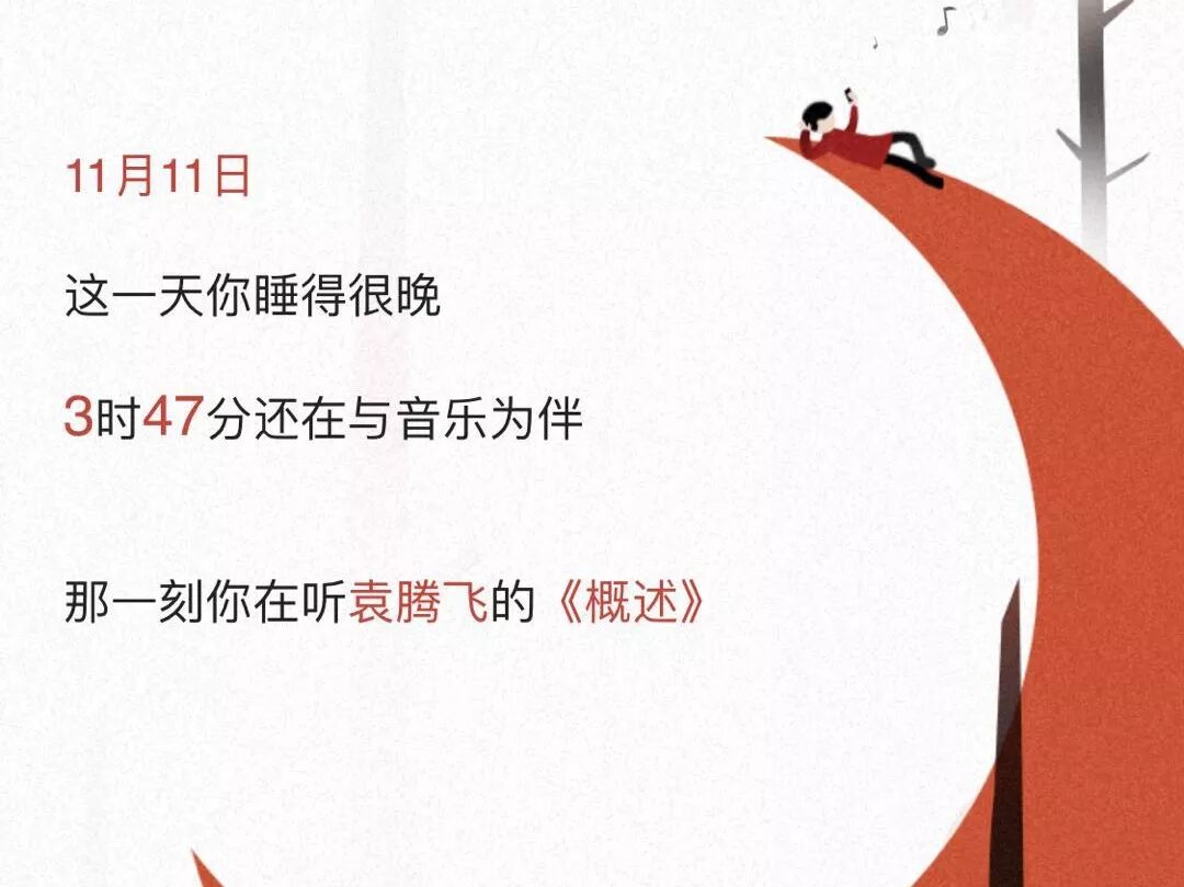 @Kmoon冬沫:看了一波网易云音乐年度总结,大家最晚听歌时间都在三点多,超过12点还在听歌的超过100天的也不少……我就放心了