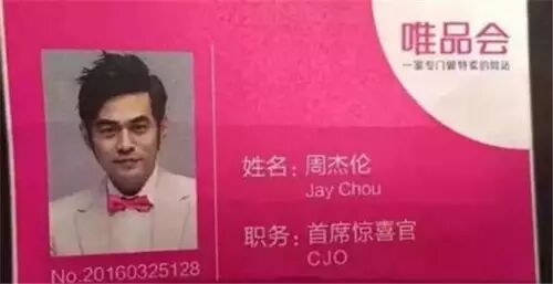三月末,人气偶像歌手周杰伦正式“入职”唯品会,出任首席惊喜官(CJO)一职。“首席惊喜官”原英文翻译为CXO。“X”代表未知,也就是惊喜的意思,是近年来在电商行业中的新兴职业。唯品会把CXO变成了CJO,是为了与周杰伦的英文名Jay相呼应。