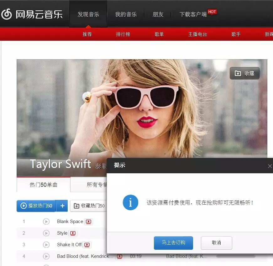 深受大家喜爱的下面这位小天后自去年开始抵制流媒体,将新专辑的歌曲从spotify下架了……结果小编惊喜发现网易云音乐居然搜索到了!!!只是依旧要付费的……