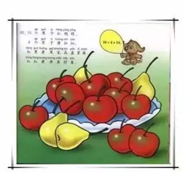 大家请看常见儿童读物的绘画步骤图,首先从一个苹果开始上色,然后是所有的苹果,然后是梨,最后是盘子和背景。