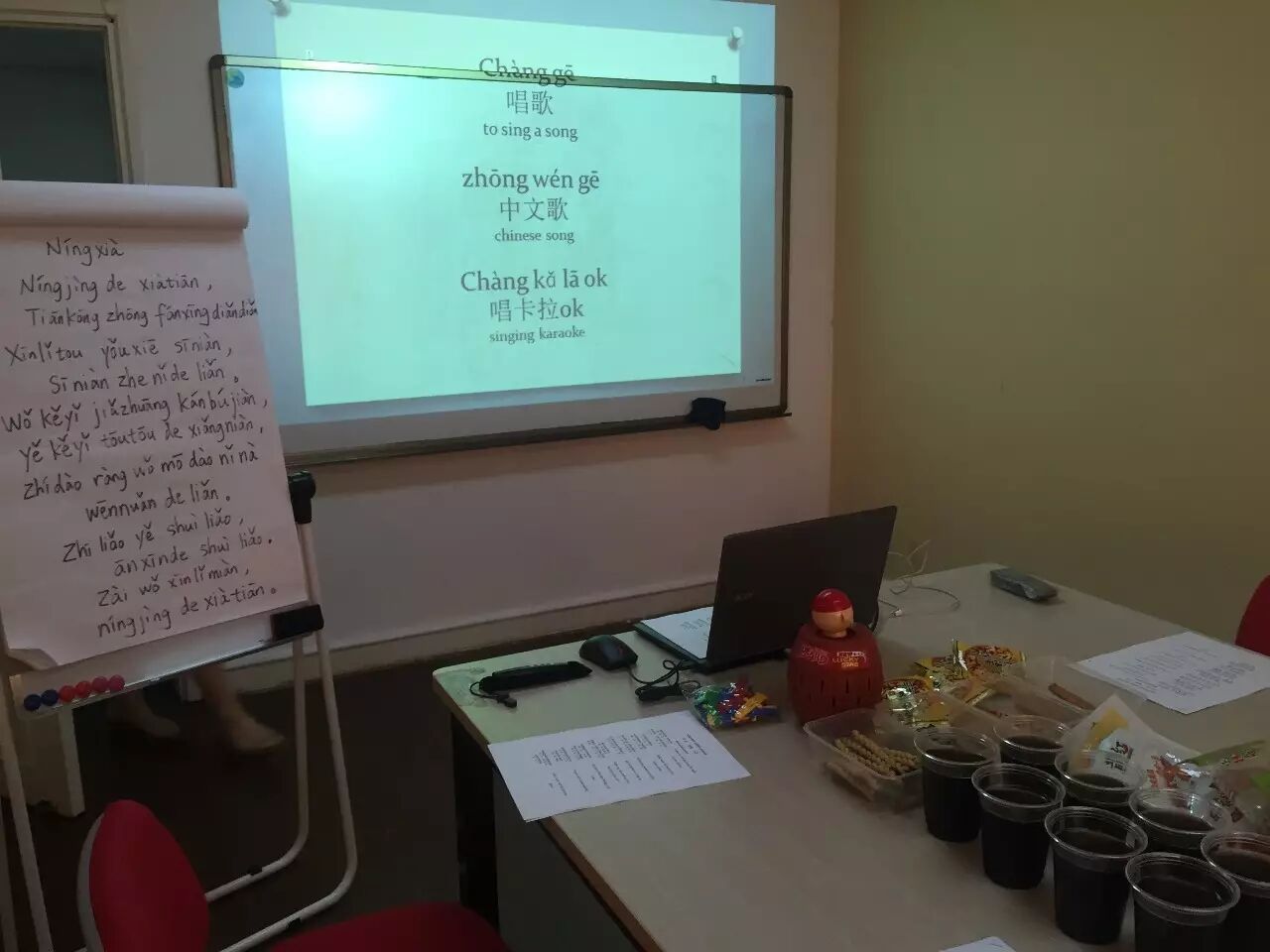 歌词都准备了中、拼、英三版,我们的老师超级用心啊