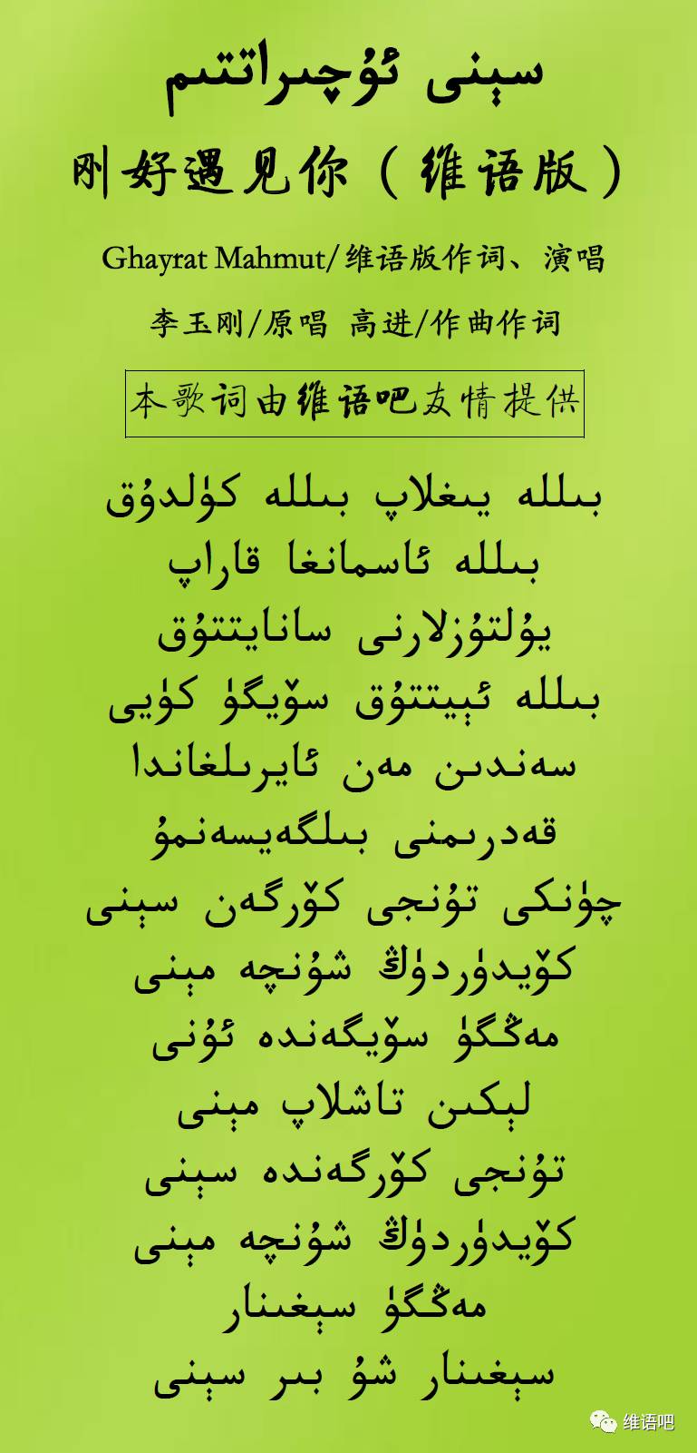 注:本文中歌曲版权归原作者所有,维语吧仅作学习分享,如有问题,请联系我们处理。