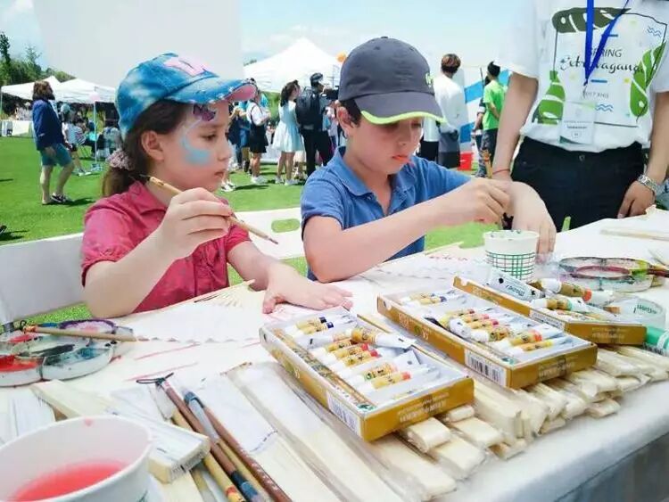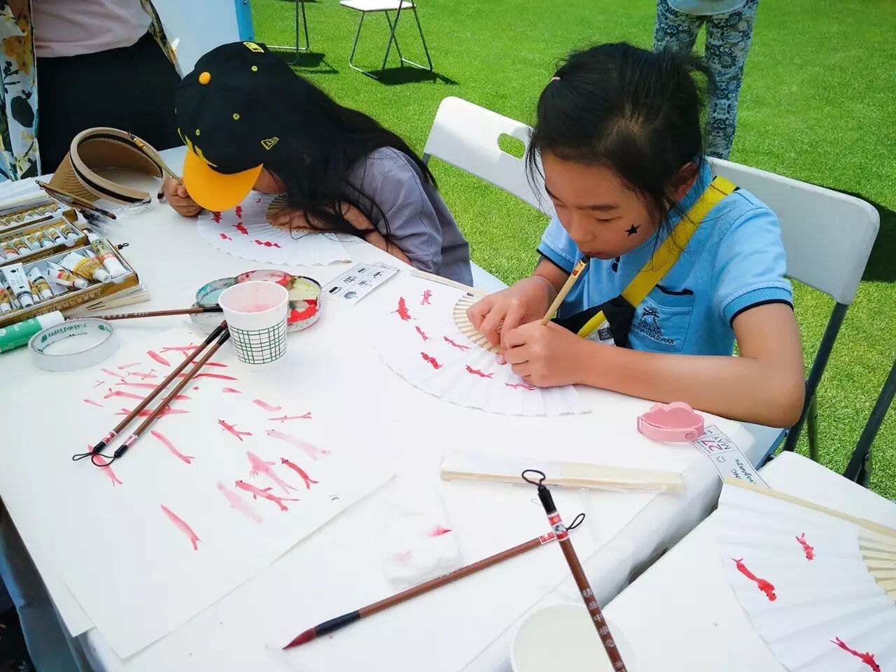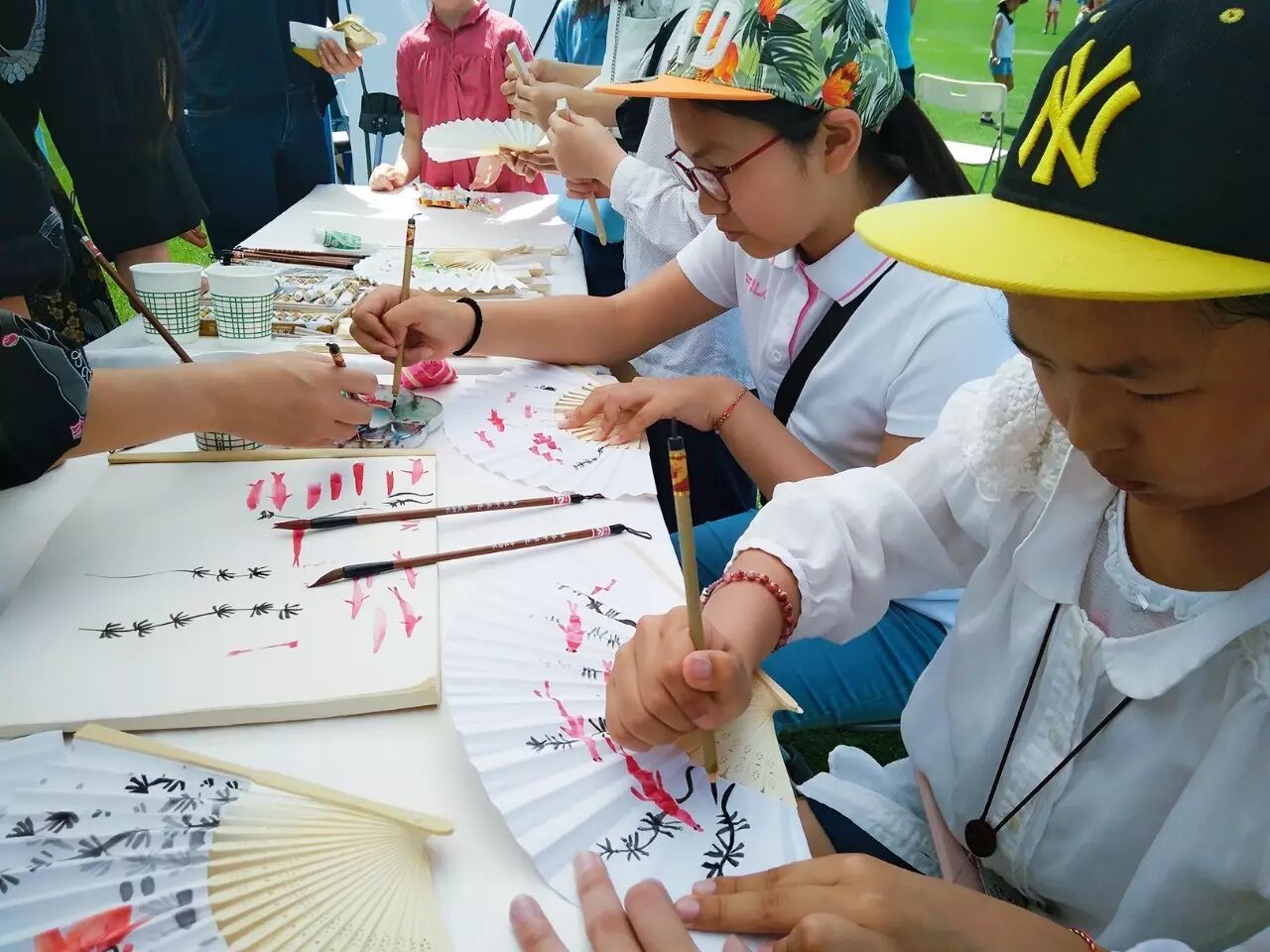 萌太熊少儿美术和大鲨鱼艺术中心作为当日受邀赞助商与合作方,为不同国籍的孩子带去了无国界的艺术体验。我们的老师们带领学生们在扇子上作中国画, 国画作为中国传统文化的代表之一,在时间的流逝与朝代的更迭变换之后,更是展现中华文化悠久绵延的历史积淀与博大精深的文化传承。我们的意旨是多元化的文化交流让中华文化在艺术的道路上永远注入新的力量与血液。