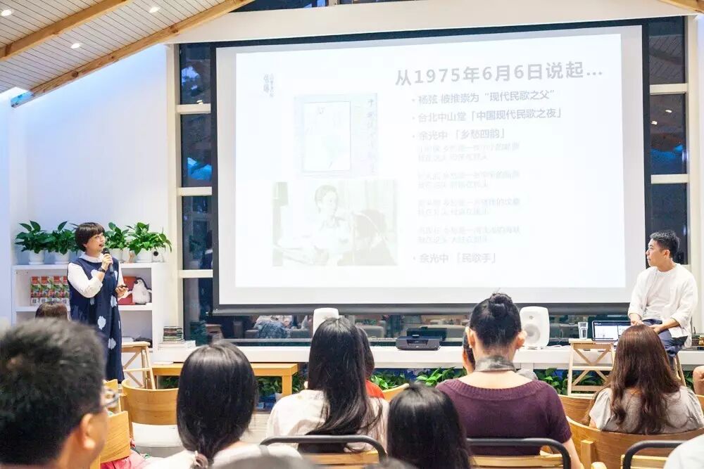 在讲解过程中,张琳精心挑选了一些台湾民歌时代的经典之作与现场的朋友们分享,如《风告诉我》、《如果》、《梦田》、《一条日光大道》、《最后一场电影》、《拜访春天》和《秋韵》等,而歌手黄欢对《橄榄树》、《再别康桥》、《你是我所有的回忆》等歌曲的现场演绎,更是让在场观众如痴如醉。这些歌曲就像我们最熟悉的陌生人,听过的人能从歌声中寻找光阴的影子,初听的人同样能够在歌声中寻找生活的注解。