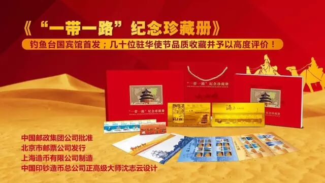 钓鱼台国宾馆隆重首发;20多国使节莅临品鉴并纷纷收藏;奥运纪念钞、第五套人民币设计师沈志云设计;上海造币有限公司制作;中国邮政集团公司批准;国礼级《“一带一路”纪念珍藏册》全球正式发行,数量极其稀少,全行200套,订完即止!