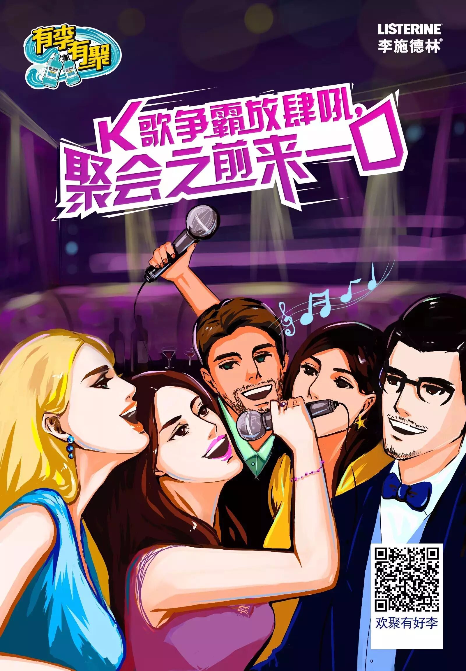 K 歌之王有云:“有李才有聚”。歌王在分享话筒和大家共度良宵一展歌喉前,需要用李施德 林全面清洁口腔,绝对不留口腔菌,才能无所顾忌纵情嘶吼!为自己,为大家一起负责,成 为相亲相爱的一家人,才是歌王!