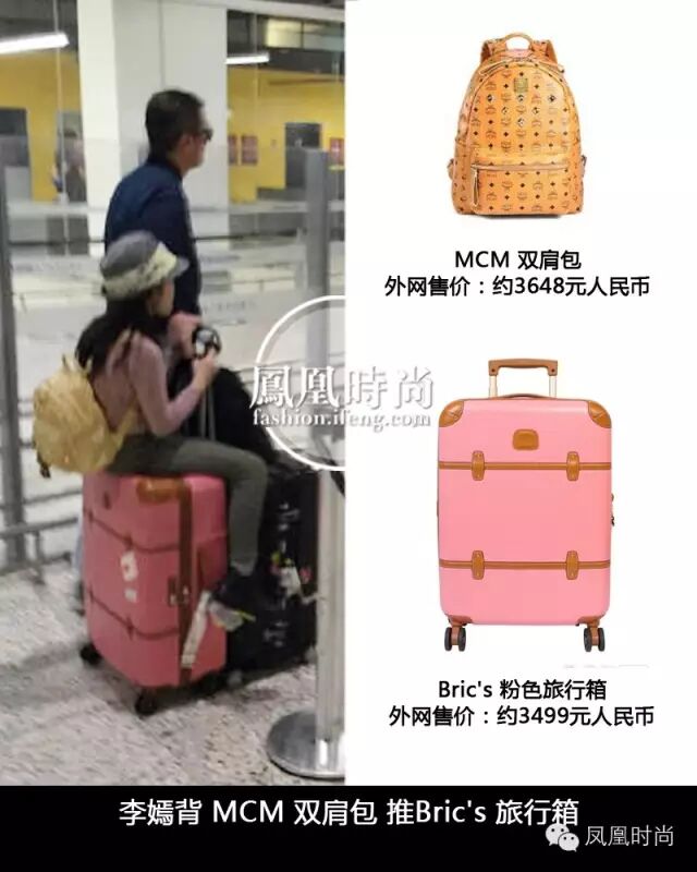 这次和爸爸的旅行,小美女李嫣背的是MCM的双肩包和Bric's 的粉色行李箱~