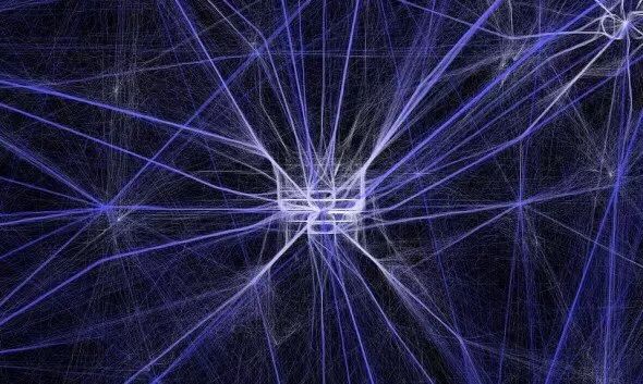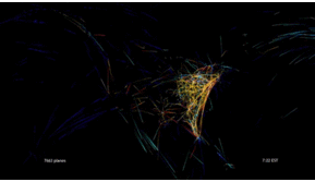 ▲ 谷歌前艺术总监Aaron Koblin根据飞机飞行线路数据的统计,进行创作的可视化数据艺术作品《Flight Patterns》