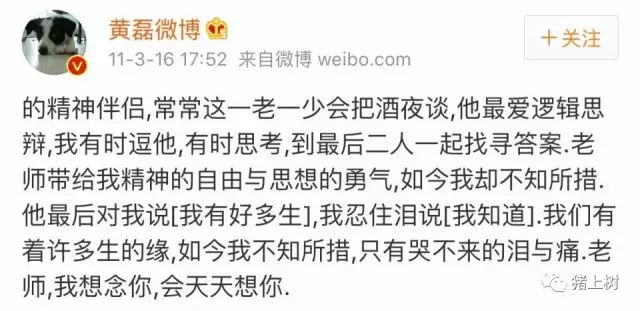 陈志远病逝的那一天,黄磊发了长微博,他说:我们有着许多生的缘,如今我不知所措,只有哭不出来的泪与痛。老师,我想念你,会天天想你。