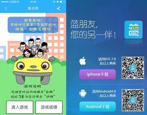 浙江卫视中国蓝公众帐号导航栏→蓝朋友→蓝朋友客户端→Ios/Android选择下载