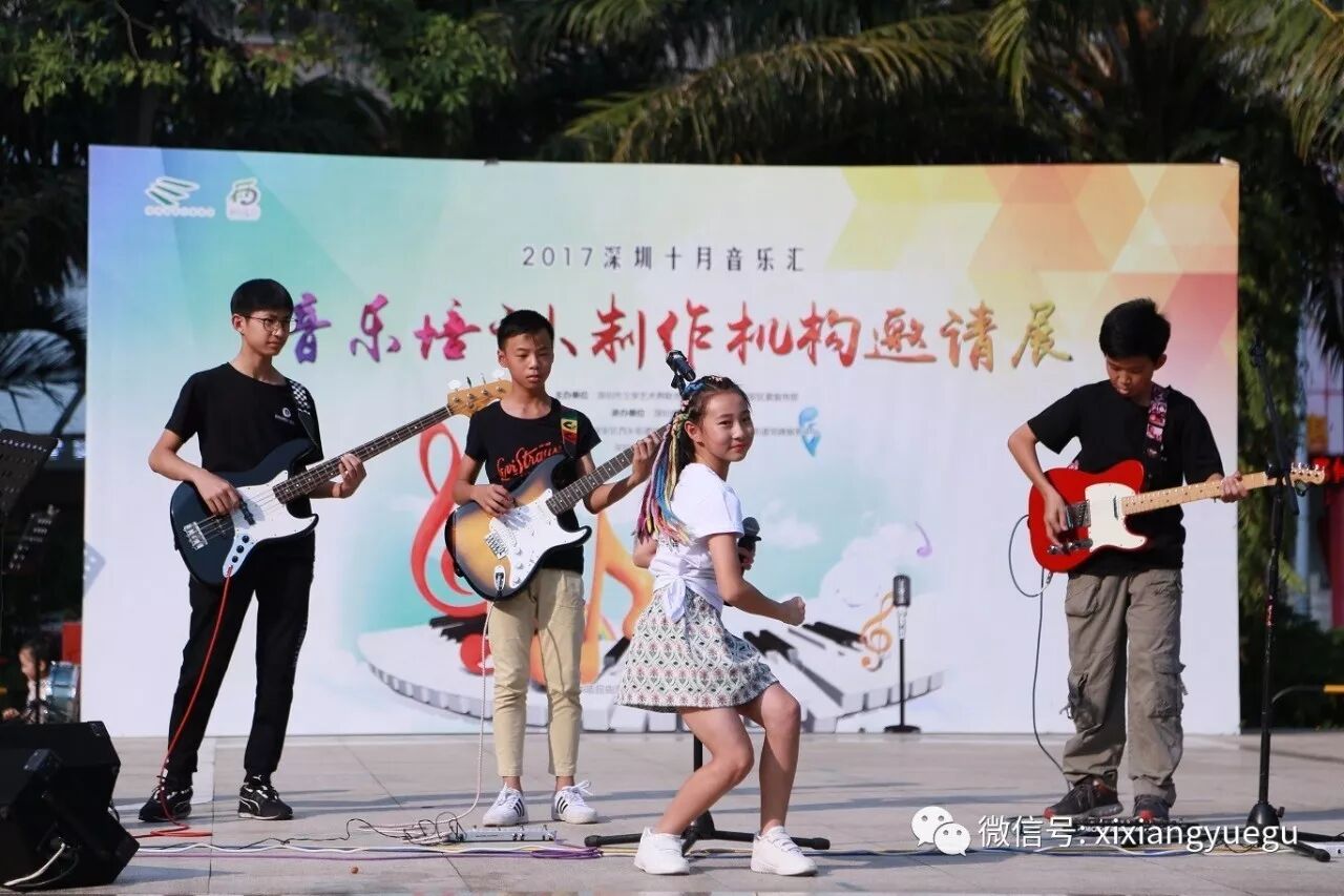 与此同时,旨在展现深圳音乐行业发展气象的“深圳十月音乐汇·音乐制作与培训机构邀请展”也于今天下午在西乡乐谷西广场隆重开展。百特现代音乐教育、馨乐音乐工作室、鼓歌爵士鼓等多家深圳音乐行业领军机构联手举办了一场精品节目展演,为辖区群众送上了24个精彩的歌舞节目,乐队、舞蹈、爵士鼓、葫芦丝合奏等节目丰富多彩,萌娃们多才多艺的表演吸引了众多观众投入观看。28日至29日,这些音乐培训和制作机构将在乐谷广场进行为期两天的集体亮相。展览采用静态展示与动态表演相结合的方式,与观众广泛互动,给市民送去音乐的福利。展览是本次活动的创意性亮点之一,具有权威性、代表性、专业性、公益性等特色,还邀请了有关专家组成评议组对参展单位提出专业评议,供市民免费观展,一览行业阵容与机构风采。