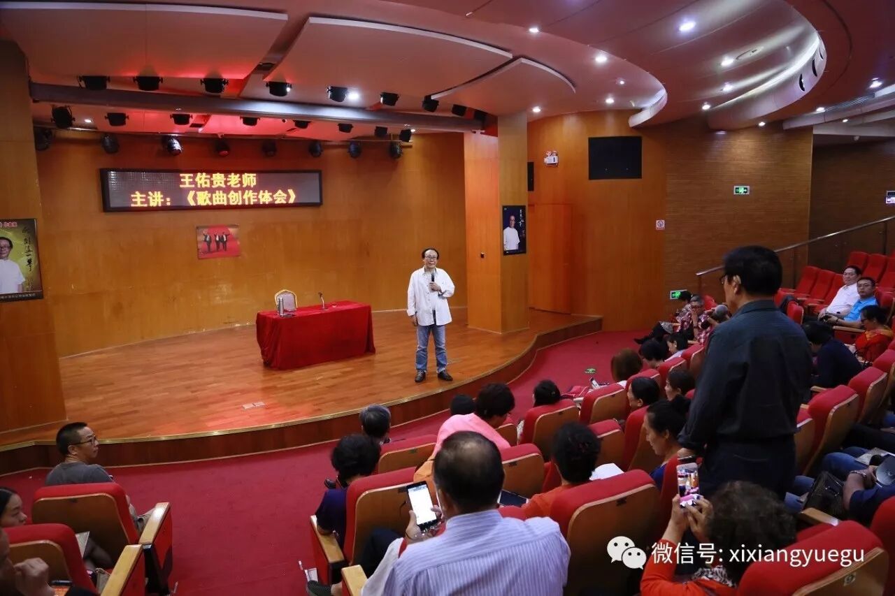 今天下午,东方歌舞团一级作曲、中国大众音乐协会主席王佑贵老师以《歌曲创作体会》为题在西乡乐谷开启系列讲座第一讲,得到众多乐迷的热烈追捧。王佑贵老师以自己创作的《春天的故事》、《长大后我就成了你》、《多情东江水》等家喻户晓的名曲为例,与观众畅谈歌曲创作的情感与体会,并与在场观众进行问答互动,幽默而睿智的语言博得大家的阵阵掌声和笑声。明天下午,作曲家、广东省优秀音乐家、深圳市音乐家协会副主席尹良将接棒讲述《音乐可以改变你的一生》。著名音乐人姚峰、蒋开儒也将分别以《美声、民族、流行唱法之异同》、《我的梦,中国梦》为题相继登台,与广大乐迷朋友面对面交流,共同探讨与分享音乐的奥妙。11月9日,国家一级演员、男高音歌唱家熊家源还将走进西乡街道海湾中学,以《快乐歌唱,健康成长》为题,为在校的孩子们上一堂生动有趣的音乐课。