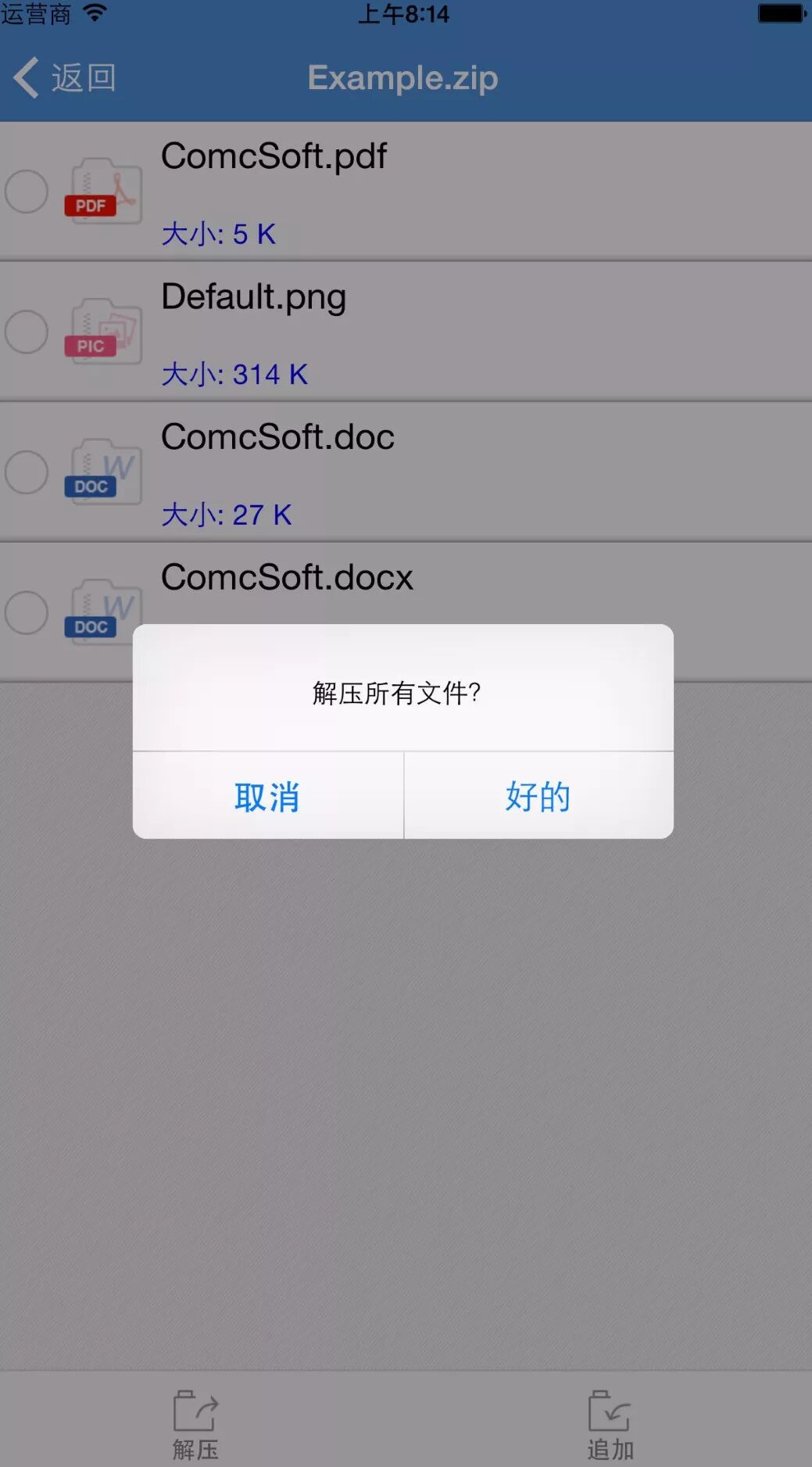 可以解压zip/zipx/rar等多种格式,日常工作完全够用。