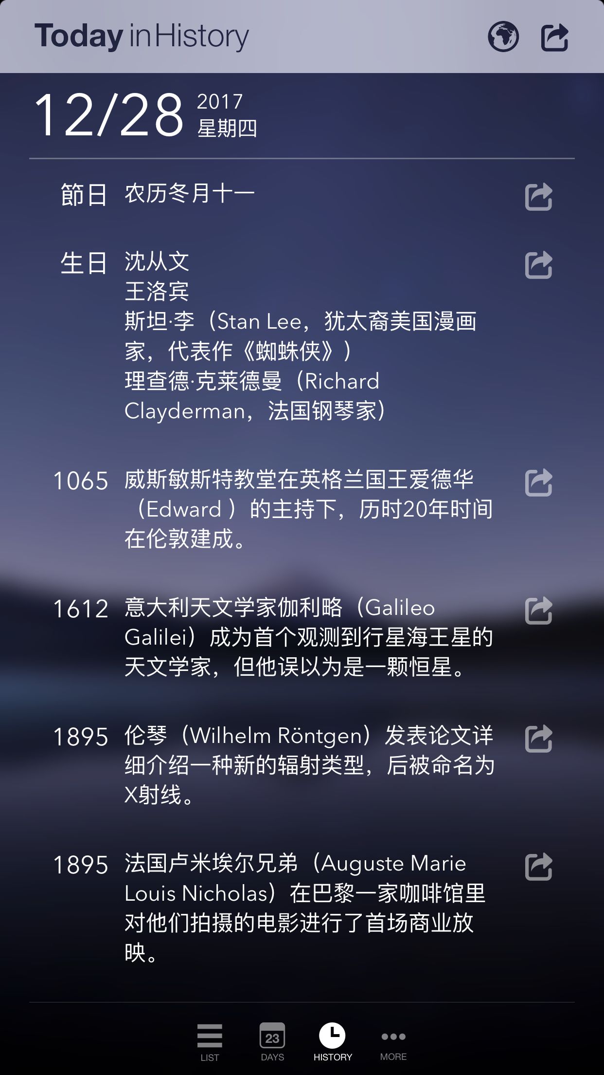 有「历史上的今天」板块,可以看看曾经都发生过什么大事,有哪些名人在今天诞生,按时间顺序介绍很用心了,涨姿势必备。