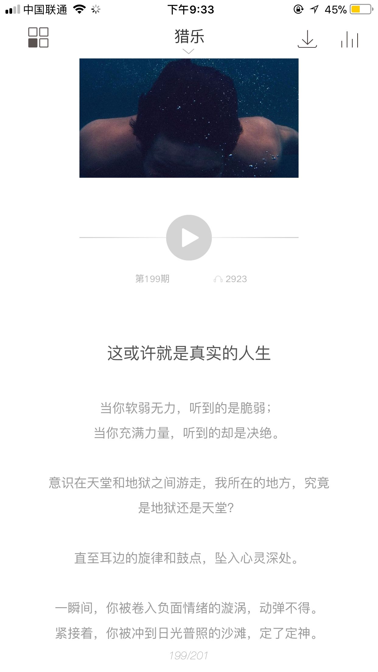 独立音乐爱好者必备,它是独立音乐的天堂,很像一本音乐杂志,音乐也都偏小众,听腻了流行音乐可以来这换换口味。整个APP也奉行极简的风格,在这里听歌可以了解到很多歌曲背后的情感, 字里行间都透露着文艺气息,就如同评论里说的:不是普及大众朗朗上口的音律,而是生动有情感的故事,总能找到一首安放灵魂的乐曲。
