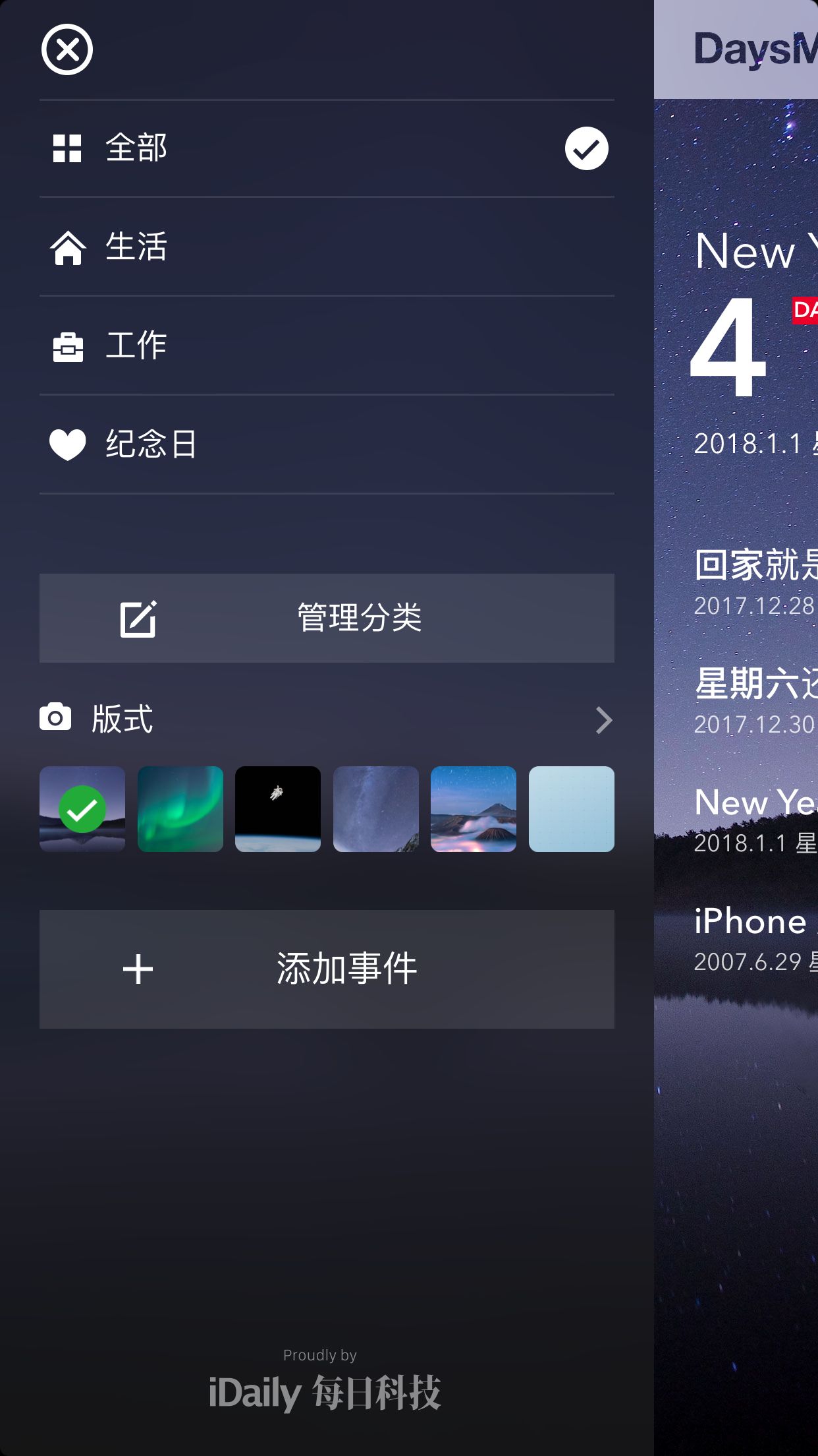倒数 、正数都OK,可以自定义背景和排版,放在通知中心也够清晰,记得设定密码,这样就不怕被偷窥啦。