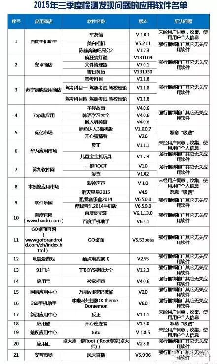其实,在上榜的APP中,百度手机助手、酷我音乐等应用已经不是第一次上工信部的黑名单,早在工信部一季度的不良手机应用名单上就已经出现过这几款APP的名字。