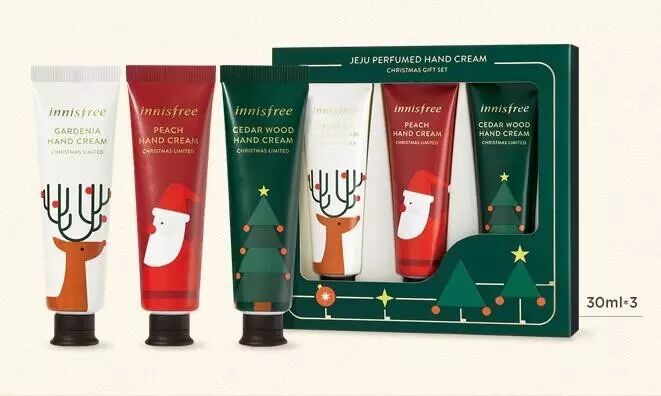 由栀子花(麋鹿)、蜜桃(圣诞老人)及松木(圣诞树)三款护手霜组成的香氛护手霜圣诞限量版礼盒,蕴含牛油果树果脂成分,采用水润不易黏腻的清爽质地,帮助手部肌肤快速吸收,保持手部的柔软细腻。官网价85rmb