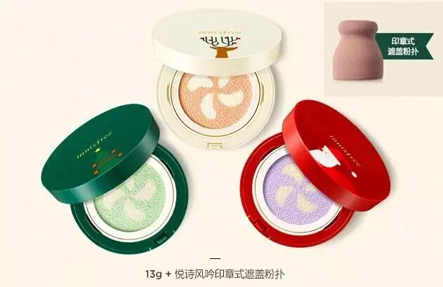此款调色气垫隔离霜在修饰肤色+水润保湿+隔离效果的基础上,新添加漩涡精华(气垫中间的小风扇),成功的将护肤和化妆同时进行!据说幸运的可以加赠能提高底妆遮瑕度和贴合度的印章粉扑!超可爱!官网价158rmb