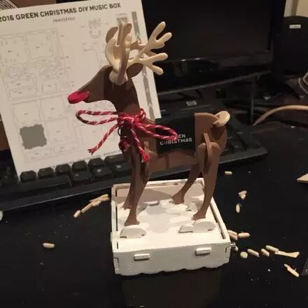 有圣诞老人、圣诞驯鹿、圣诞树三款,可以自由组装上色。使用了亲环境材料,体验手工制作乐趣,并能把温暖带给他人的手工小物限量版DIY套装。目前是官网上面买套装加15元可获。单买一个是50rmb。据说音乐盒一部分收入也会捐给需要资助的小朋友。超温暖!