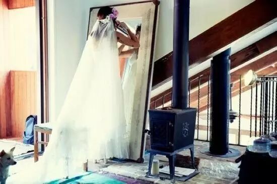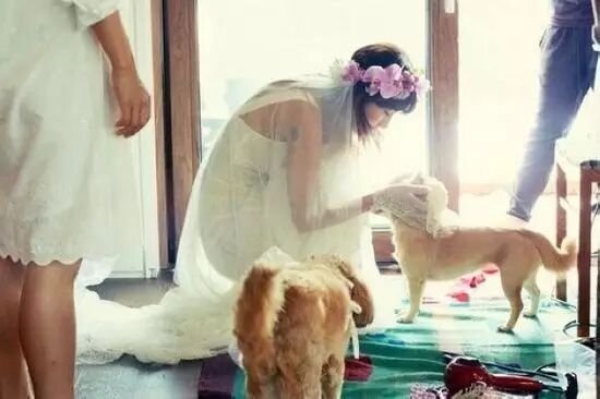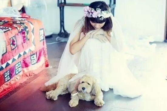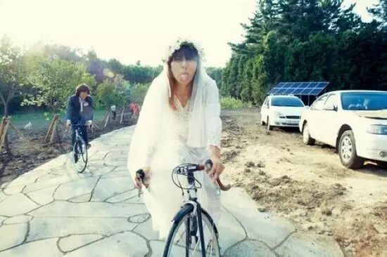 穿着简约的婚紗,头戴从田野里采摘回来的用野花编制而成的花环,与丈夫十指紧扣,就这样静悄悄的完成了婚礼。