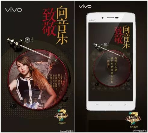 vivo智能手机在《我是歌手3》节目中选择了恰到好处的融入节目现场、歌手及使用场景,以植入营销的方式让观众自然的接受。比如导演洪涛在每次宣布竞演结果之前,都会手执vivo新款X5Max手机,来宣布竞演结果,而在《我是歌手3》第六期最后的竞演结果公布环节时更出现了众明星乐趣哄抢“世界最薄的智能手机”——vivoX5max的一幕。节目很自然的一个拍摄花絮,vivo抓住了这个突发的机会。一夜之间,vivo在互联网上所有的渠道,无论是天猫、京东的官方旗舰店,还是微博微信,甚至是vivo粉丝论坛,都发布了同样一张海报,将其迅速变成一次即时反应的全网营销事件。