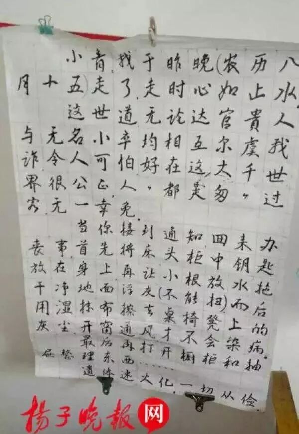 近日,在南京一栋老居民小区里,有邻居闻到对面屋子里传出来一股异味,联想到居住的老大妈已近3个月没有见到人,立即将这一情况反映给当地社区。社区工作人员赶到后敲门无人应答,当地警方赶到现场,打开房门发现老人已经死亡。从老人留下的遗书看,这名独居的81岁老太,疑为在10月5日死亡,至被发现时已过去2个多月。对此,民警希望父母独自居住的,儿女要经常登门看望老人,工作再忙也要常与老人通电话,以免老人发生意外还一直蒙在鼓里。
