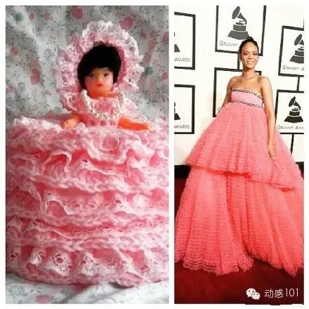 而穿着粉色蓬蓬裙的Rihanna,就这样被网友们玩坏了: