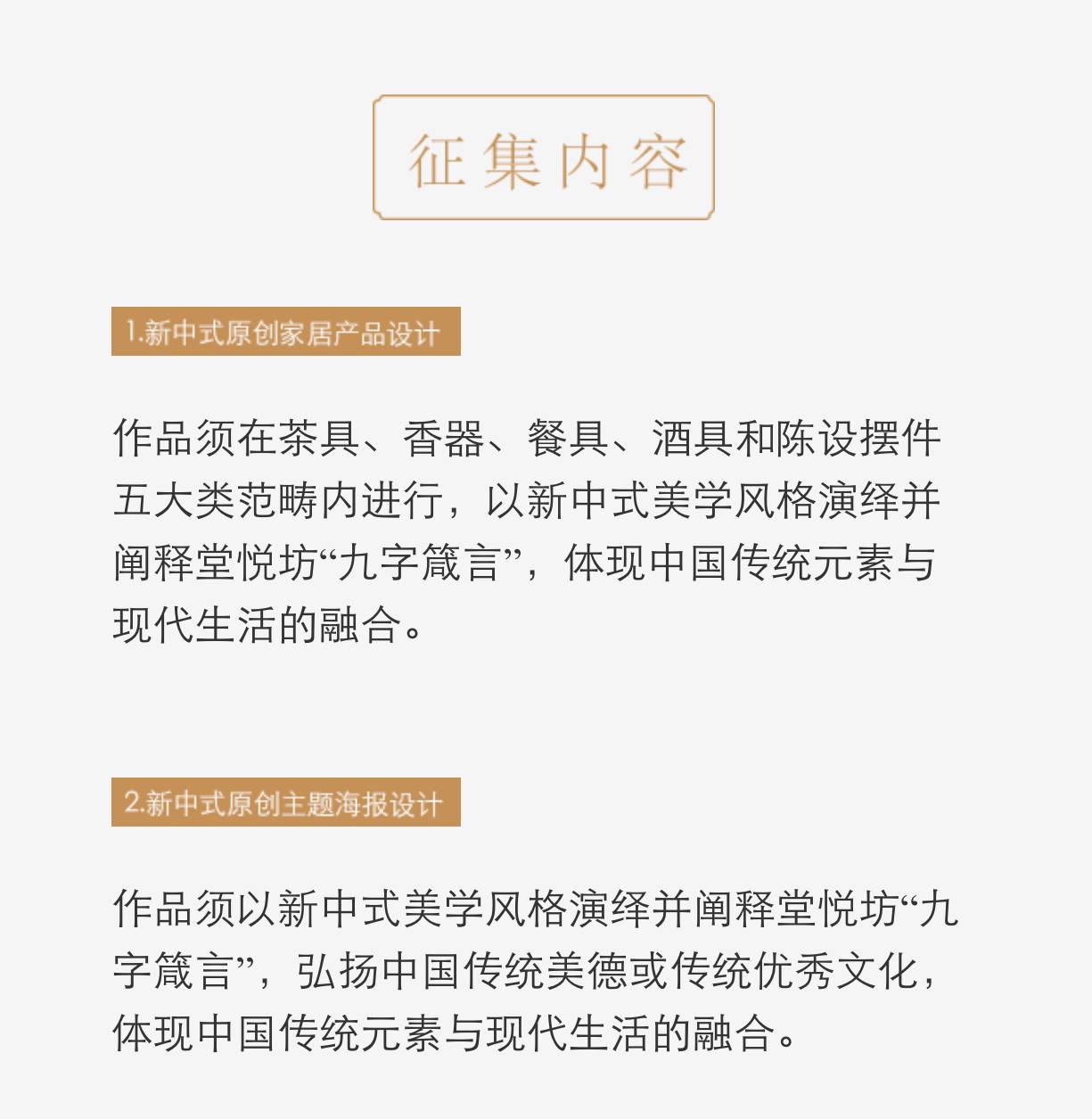 『堂悦坊』新中式原创设计大赛,传承文化滥觞,激发设计灵思,打造传统元素与时尚元素相融合的新中式家居日用器物,找回真正属于我们中国人自己的新中式生活!