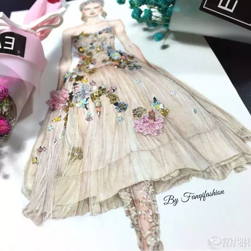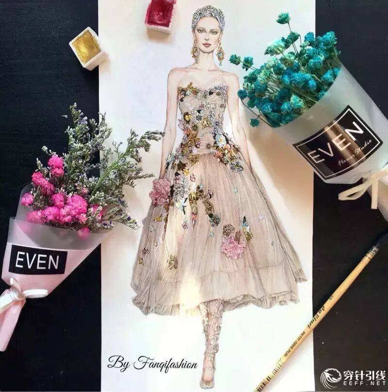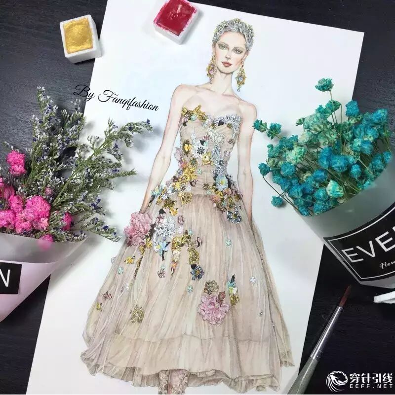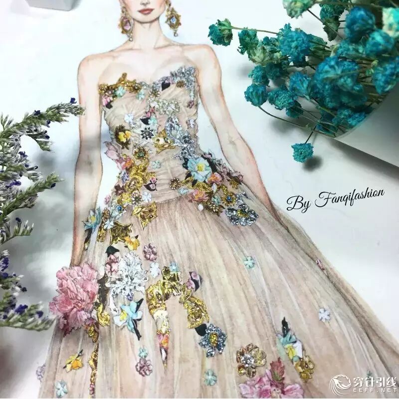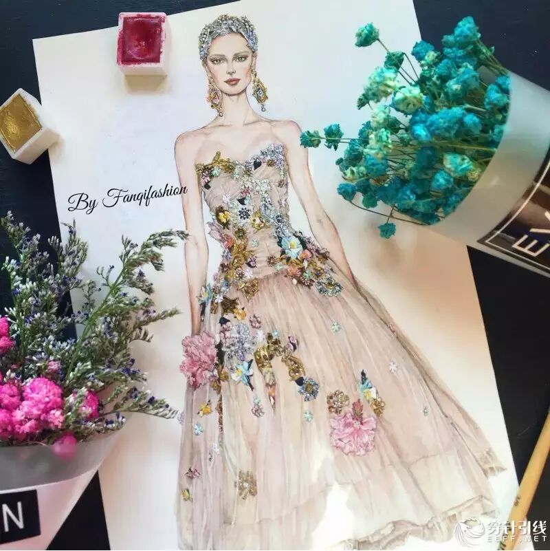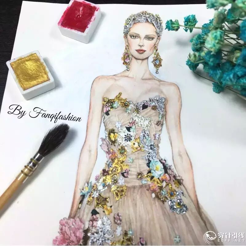 整幅画全部由水彩手绘完成,人体我画的是较写实的比例,个人不是很喜欢夸张的风格~微博:fanqifashion 欢迎关注 交流心得
