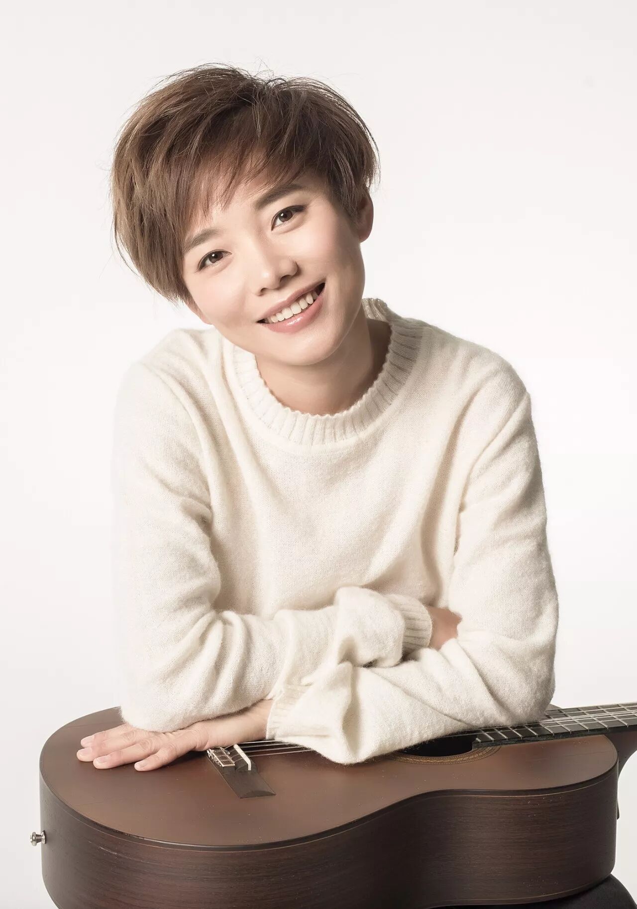她是那种男孩性格的女生,声音干净,弹着吉他。